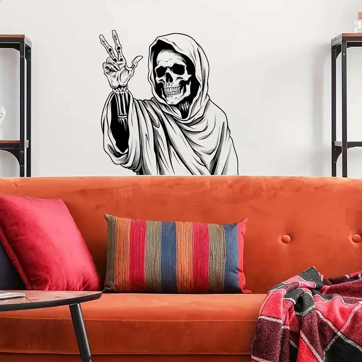 Bring a dark, mysterious energy to your walls with this eye-catching Black Cape Skull Wall Decal — the perfect blend of style and spook!