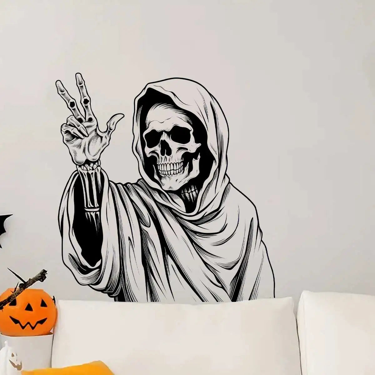 Transform your space into a spooky haven with this 1-piece Black Cape Skull Pattern Wall Decal. Perfect for Halloween or year-round gothic vibes, this decal features a striking skull wearing a flowing cape, adding a dramatic and eerie touch to any room.